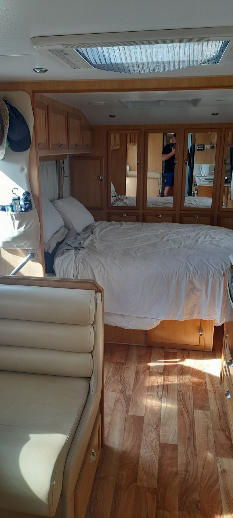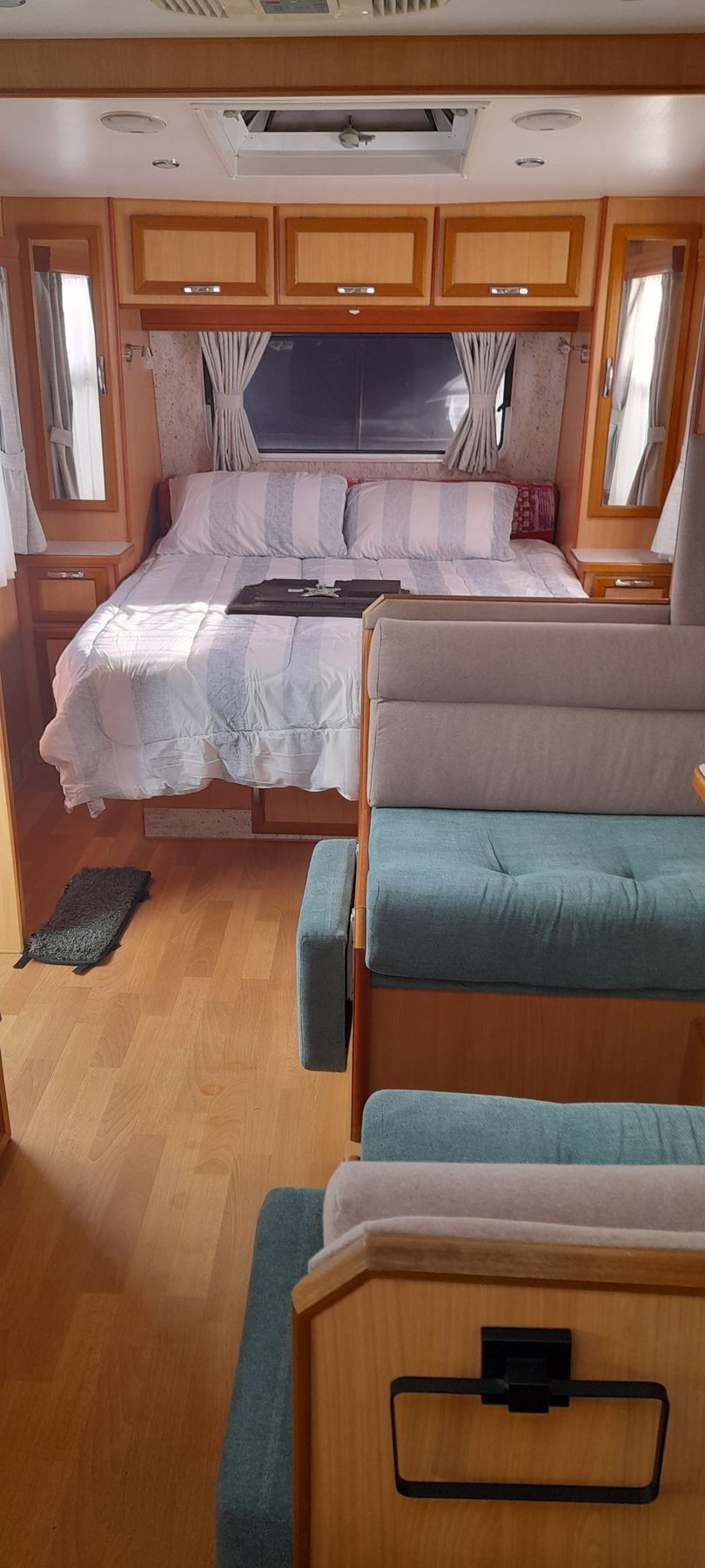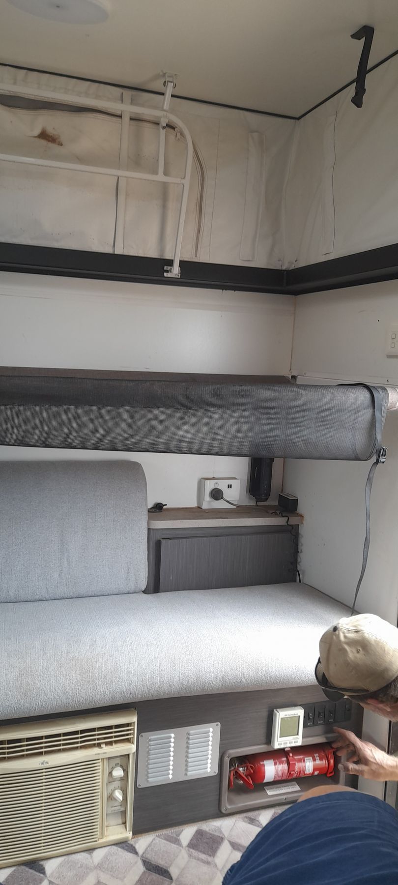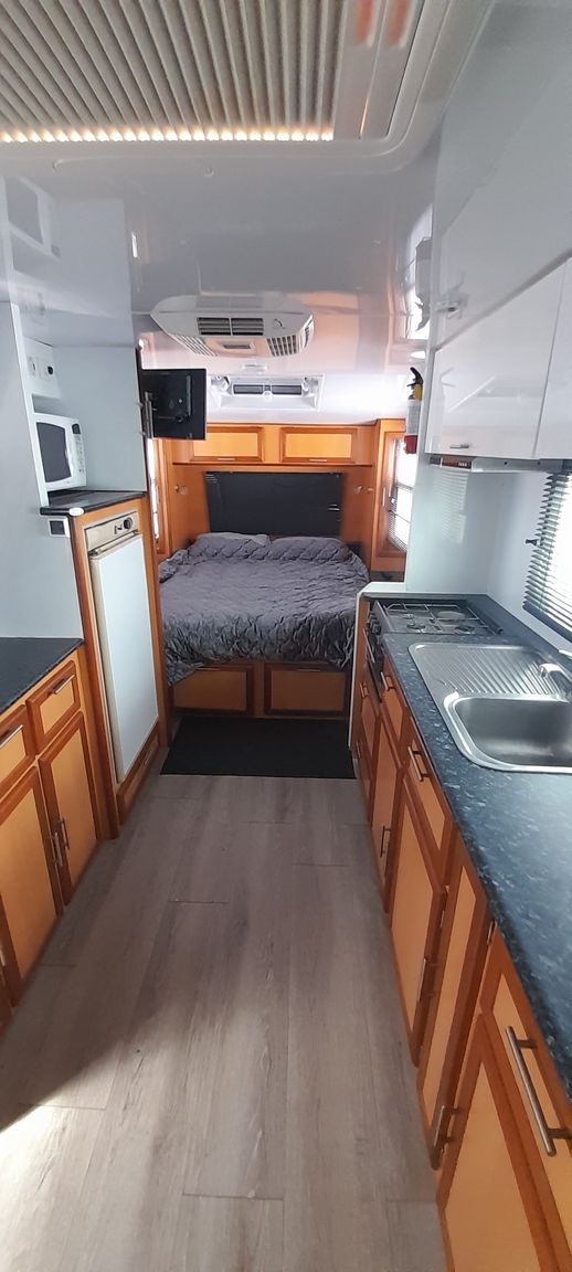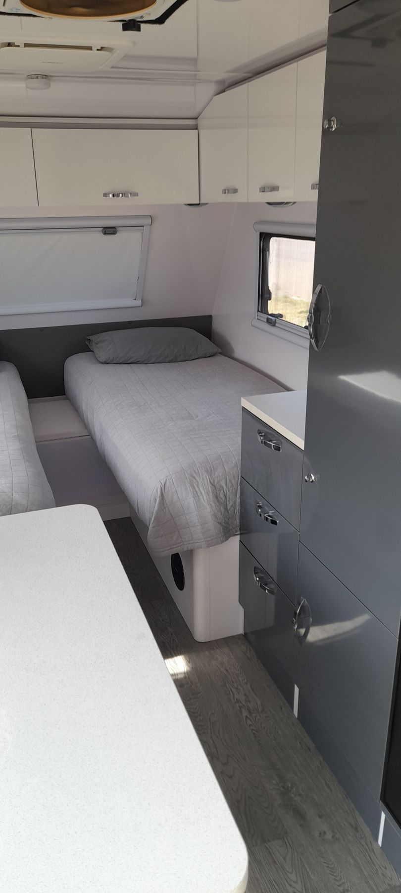 Single Beds, 3 way Fridge, AC unit, Micro Wave, Solar Panel